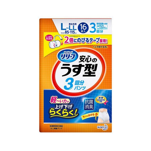 Kao Relief Adult Ultra Thin Pants Size L-XL 3 Rounds of Absorption 16 Pack – Thin and Reliable for Independent Walkers
