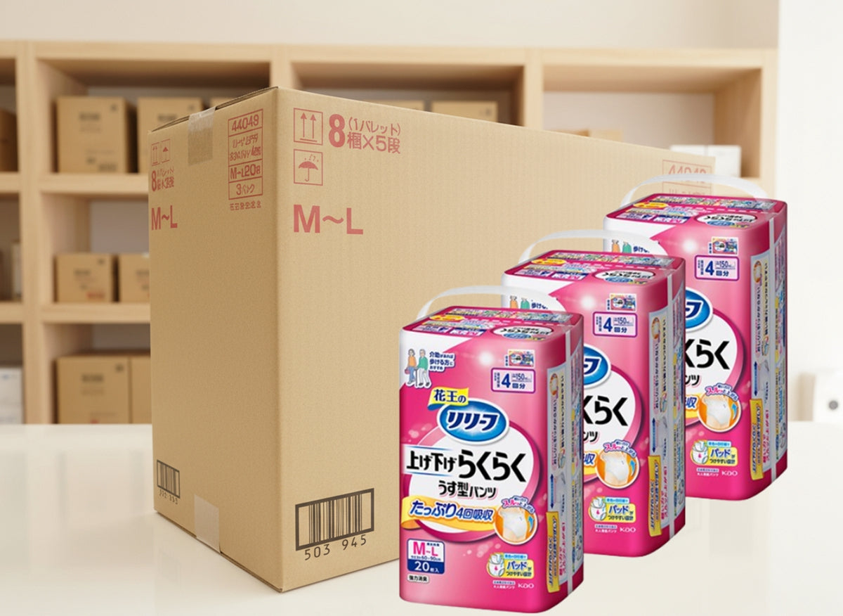 Kao Relief Easy Up & Down Pull-Up Incontinence Pants for Adults M-L, 4x Absorption | 1 Carton 60 Pieces(20 Pieces x 3 Packs)